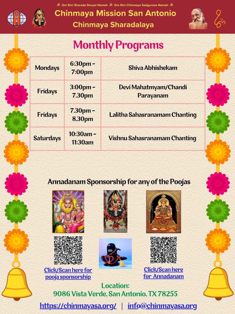 Click here to Sponsor a Pooja at the Chinmaya Sharadalaya Temple